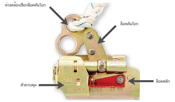 เพื่อให้ล็อคกันตกกดลงไปที่เชือก