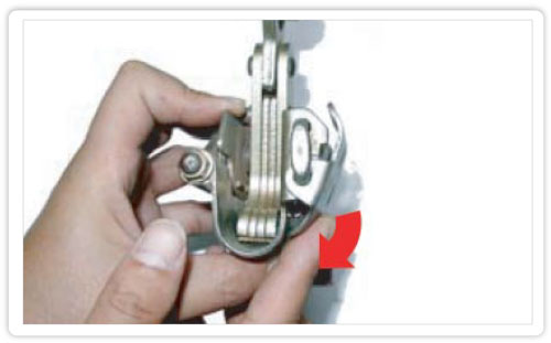 กดล็อคแล้วโยกไปทางซ้ายเล็กน้อยเพื่อให้สปริงหลุดออกจากล็อคสลัก ณ.ปุ่มรับสปริง