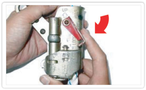 1.1 หมุนล็อคสลัก (สีแดง) ไปยังทิศทางตาม